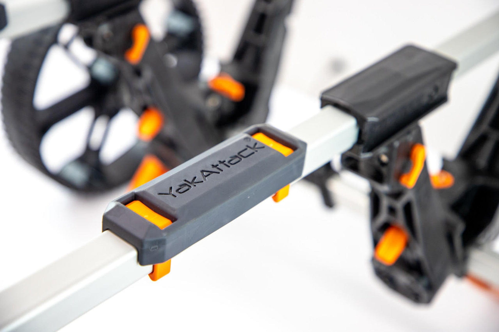 With the vast and ever-evolving shapes of modern-day kayak hulls, we knew our bunk system would require extreme versatility. When we found that inline bars worked better on some boats while crossbars worked better on others, we decided to build both options into the BarCart. You can transport “roof rack style,” putting the bars in a crossbar configuration for boats with pontoon-shaped or reasonably flat bottoms, or you can configure them in a traditional “bunk-style” configuration, where the bars are parallel to the hull of your vessel, for kayaks with more of a “V” shaped hull. In this configuration, the bars can be locked into 6 different positions, depending on your boat’s width and the shape of its hull. Securing a kayak to the BarCart is not a one-size-fits-all proposition either, so we added a number of different tie-down points. Strap loops integrated into the wheel hubs work great for kayaks that are wider than the wheelbase of the cart, and a centralized tie-down point located at the center of the axle is great when transporting narrow watercrafts. The tie-down points are designed for 1” flat webbing cam straps (not included), but you can also use rope with less than 5/16” diameter. For added grip on the underside of your kayak, the BarCart includes four super “grippy” and easily positionable rubber bumpers. For long-term durability we opted for designing snap-on rubber bumpers instead of standard foam.