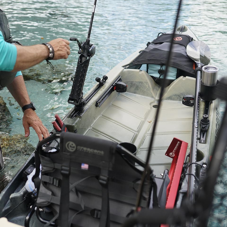 We teamed up with the folks at YakAttack to ensure that our boats are fully equipped with the best mounting systems and offer our paddlers limitless customization. Two Gear Tracks along the cockpit offer close and convenient mounting options for gear. The two MightyMounts behind the cockpit are perfect for rod holders or camera mounts. The two Gear Tracks in the back allow for customizable bungee and storage options. The CK1 Venture, like its predecessors, features a transom capable of mounting trolling motors.