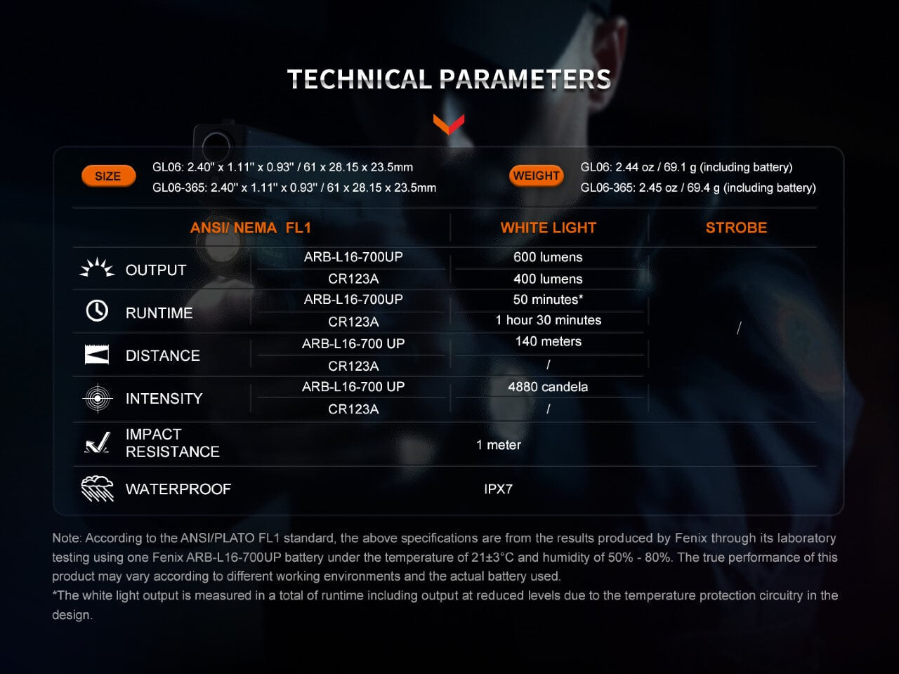 Please refer to the Fenix Store website for more warranty information about the Fenix GL06 Pocket Pistol Tactical LED Light - 600 Lumens.