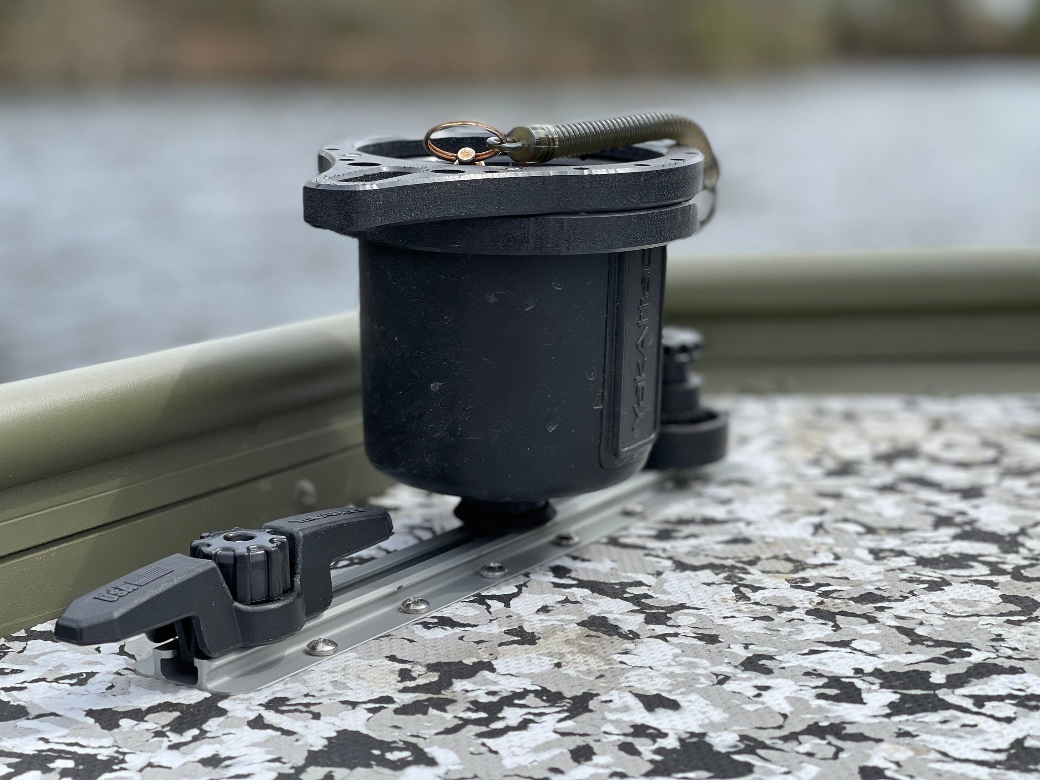 The Cup Caddie is a great way to turn your track mounted cup holder in to the ultimate organizational tool. You have spots for pliers, scissors, fish grips or what ever else you can think of. Really easy to install. You get everything you need to install it except the cup. Or you can buy the kit and get a YakAttack Cup and a Cup Caddie.