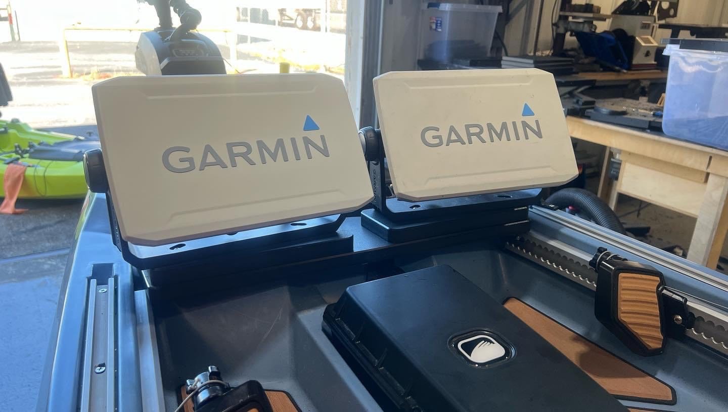 Our Graph Mount for the PWR 129 is super easy to install and very light. You have so many options to mount your graphs to your PWR 129. And any size you would like. We supply you with all the hardware to install the mount on to your kayak. Just line up where and how you want to mount your graph and drill the holes in the mount. And bolt them down. Super easy. This mount also allows graphs to be lower so they aren't in the way when casting.