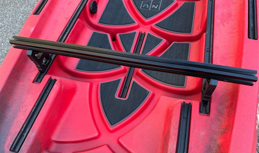 The Quadbar system allows you to mount items across the front deck of your kayak. Our system features 4 sides of slotted T Track to mount items rather than just one slot.