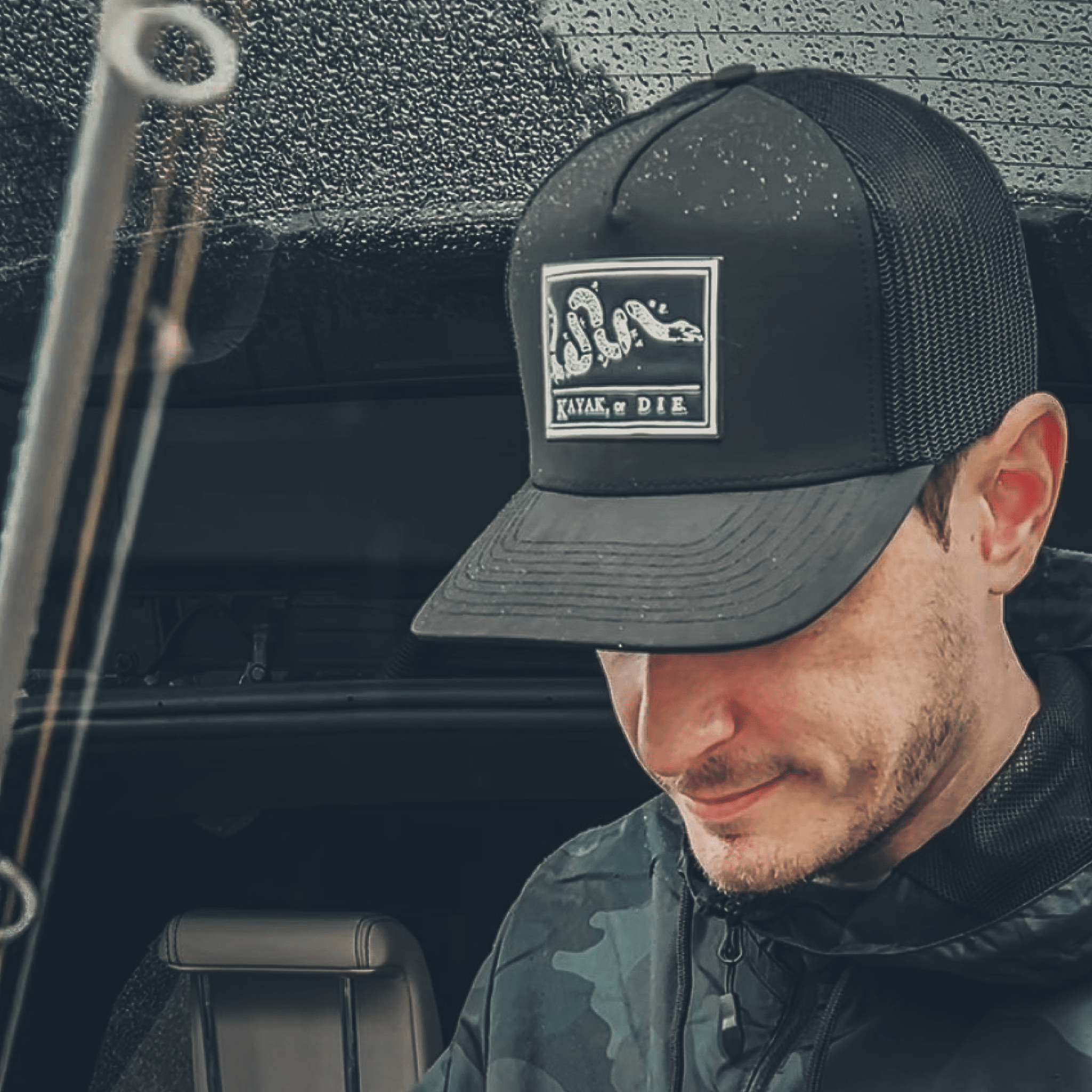 American made trucker-style hat. Water repellent outer polyester shell. Heat applied premium matte KOD emblem provides dimension and a modern look.
