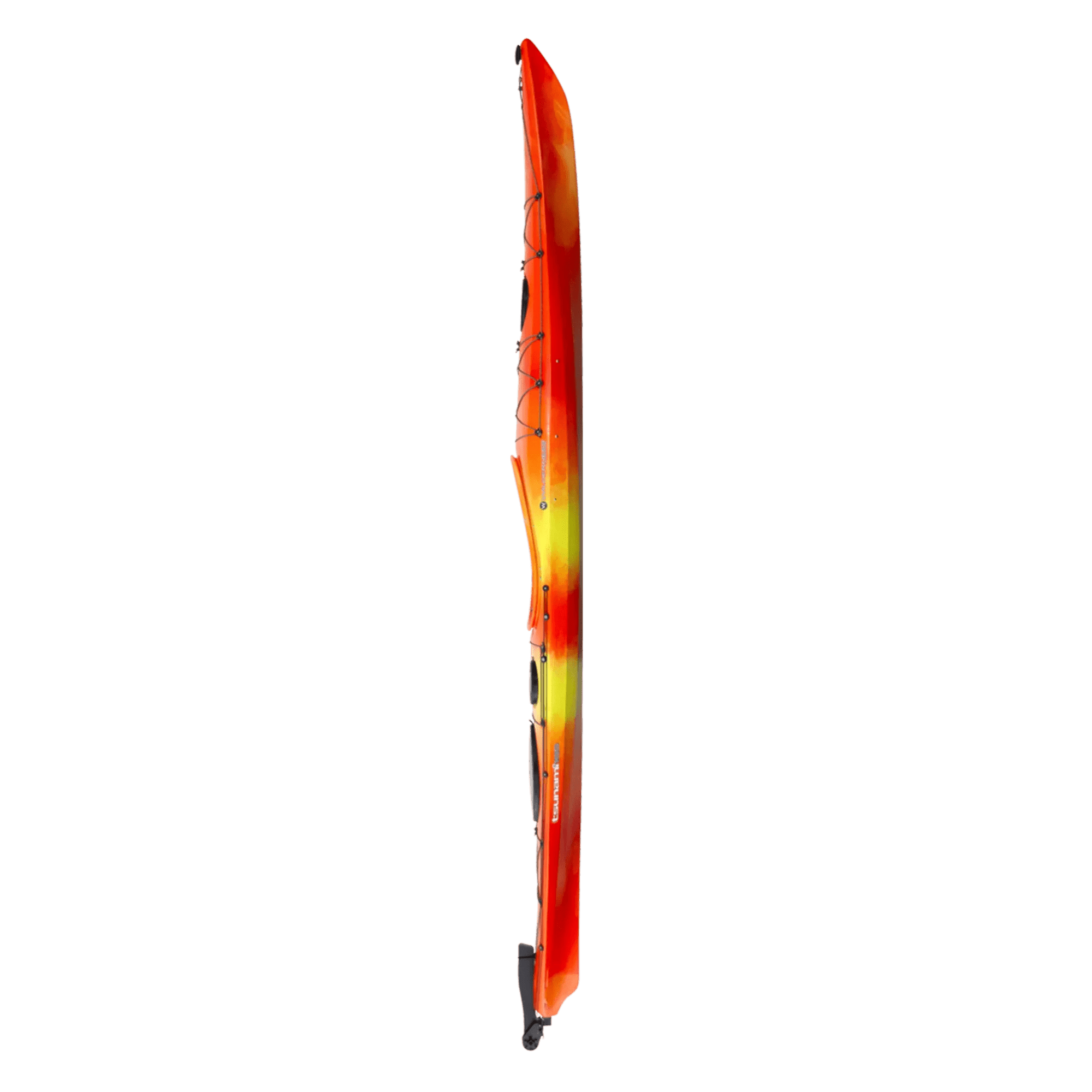 An icon is re-imagined in the redesigned Tsunami 165 day touring kayak. The latest Tsunami design inspires performance and exploration with modern deck lines. A focus on improving the paddler’s experience sees new features incorporated into the design. 2 removable mesh deck storage bags are perfect for stowing close-at-hand items, while an under-deck storage area provides another alternative for staging your favorite beverage.