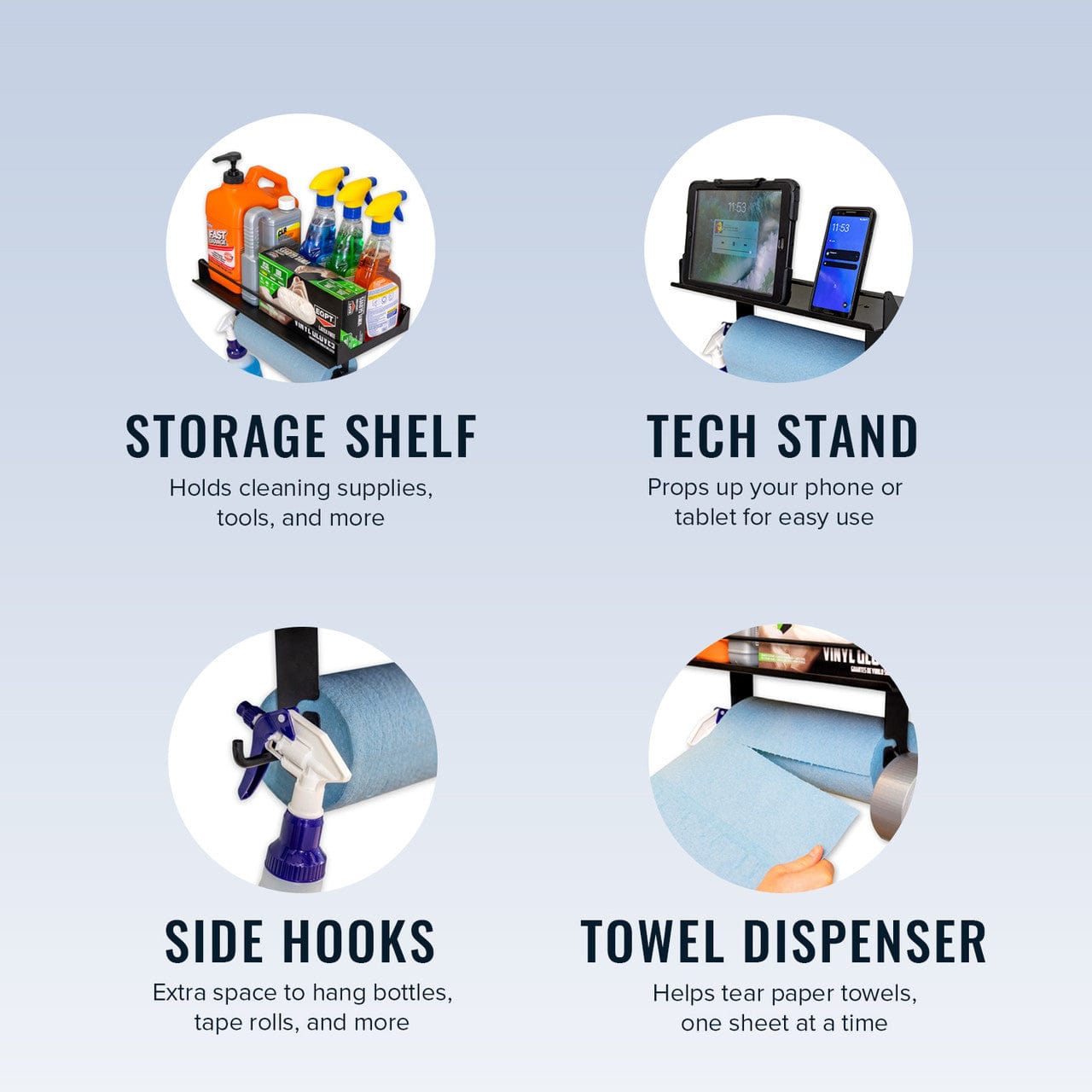 Please refer to the StoreYourBoard website for more warranty information about the Quick Clean Paper Towel Holder and Wall Shelf.