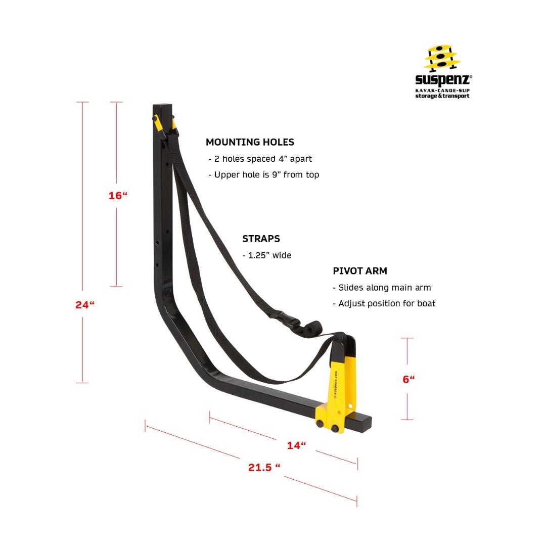 - Suspension Strap System – Superior Protection: Eliminate pressure points and prevent hull distortion by suspending your watercraft on durable straps, with the rack extending 22" from the wall to provide ample clearance and secure storage.