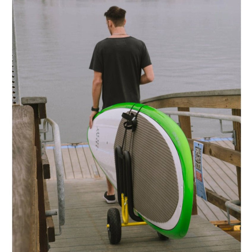 Guide your board to and from the water with a single hand! This Single-Up Paddleboard and SUP Cart is the easiest way to transport your board.