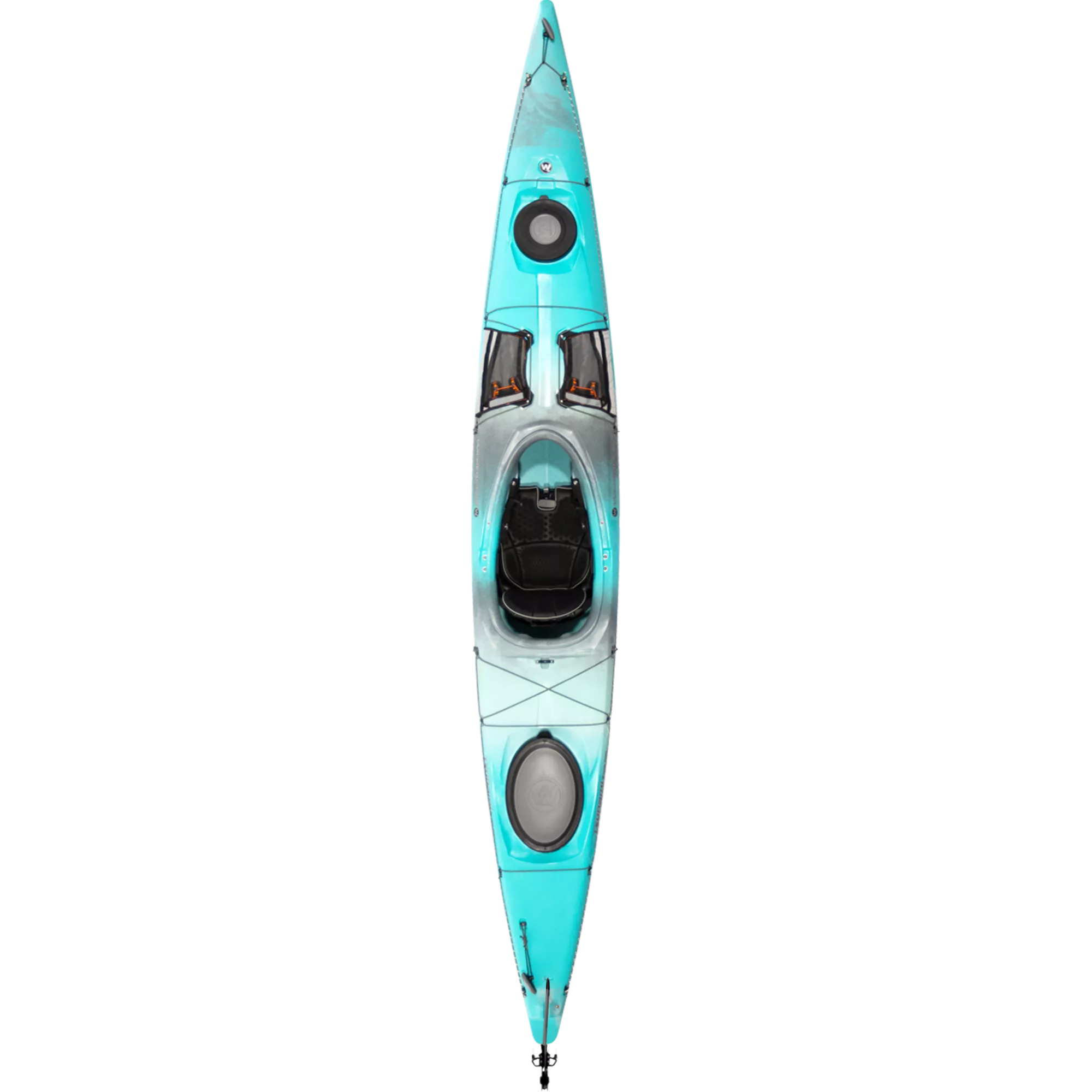An icon is reimagined in the redesigned Tsunami 145 day touring kayak. The latest Tsunami design inspires performance and exploration with modern deck lines. A focus on improving the paddler’s experience sees new features incorporated into the design. 2 removable mesh deck storage bags are perfect for stowing close-at-hand items, while an under-deck storage area provides another alternative for staging your favorite beverage.