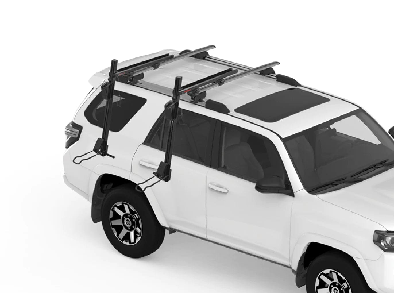 - Easily load and unload kayaks and boards at waist level at the side of the vehicle with the easy to use slide and tilt mechanism