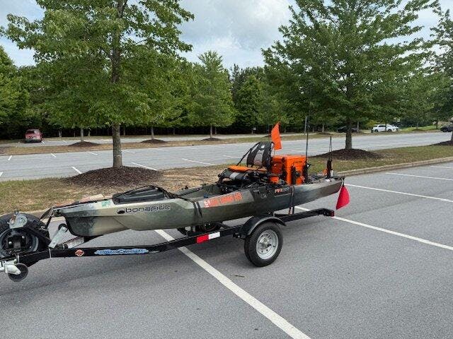 The second common use of the Dry Pod is to mount your fish finder display to the top surface, store your battery on the inside, and mount your transducer on the underside. Hinged on the bow side of the compartment, the Dry Pod can easily be lifted forward by releasing the rubber strap allowing the ability to remove any debris from your fish finder’s transducer. Included in this kit is one complete Dry Pod with side clips and a lid. Made in the USA.