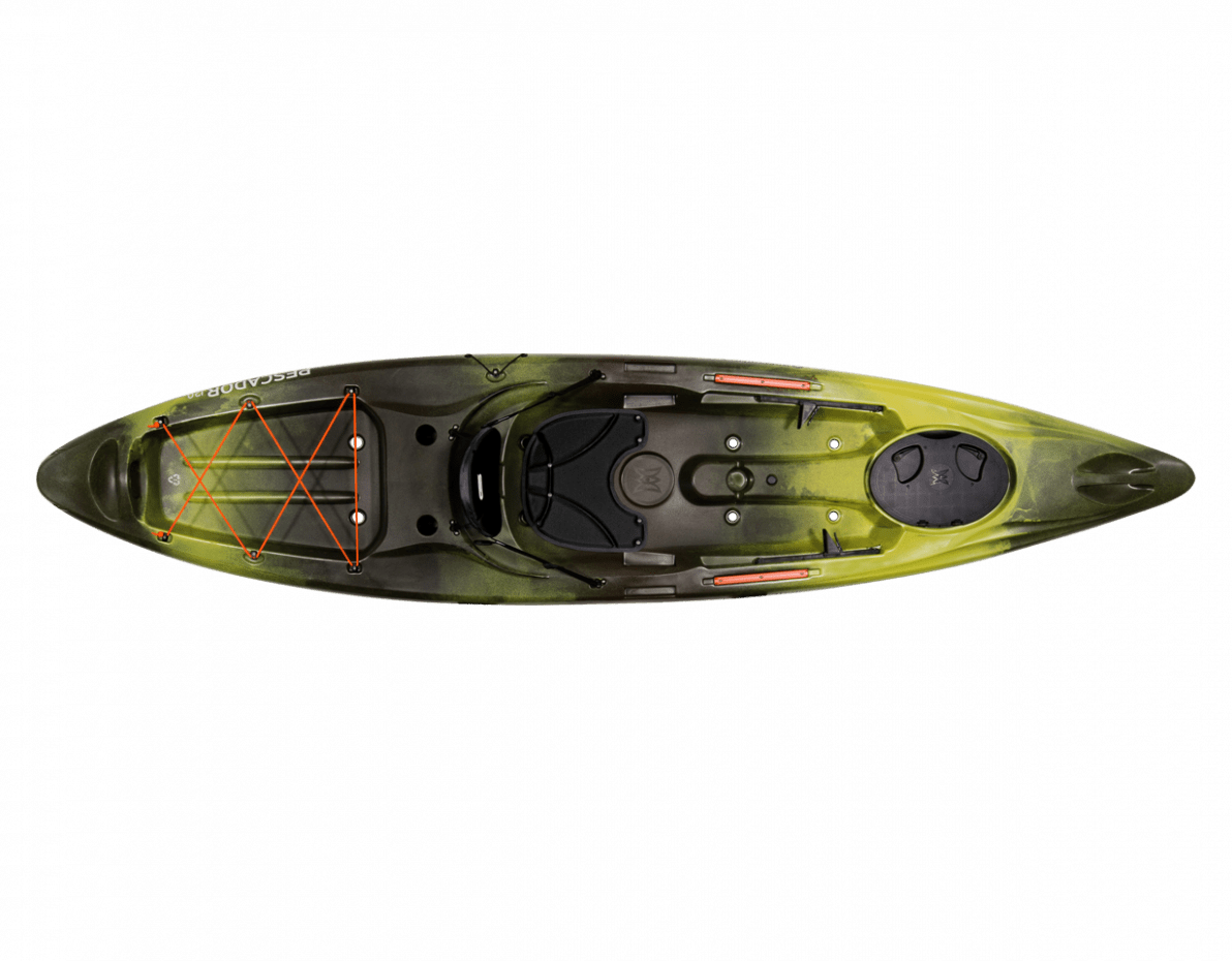 The Pescador surpasses its competition by incorporating high-end features, such as an ergonomic seating system, to the everyday paddler. The comfort seating system has thick, ventilated padding and an adjustable seatback that reclines forwards or backwards, providing customized support and comfort.