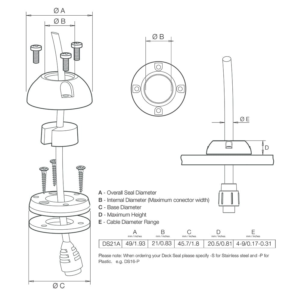 Scanstrut DS21A-S Vertical Cable Seal - Stainless Steel [DS21A-S]